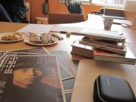 昔ながらの喫茶店の雰囲気たっぷりのTORAIで。壁に中原中也のチラシを貼ってくださいました。